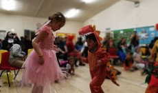 Ezen a délutánon nem csak a gyermekek, de a felnőttek is kiszakadhattak egy kicsit a mindennapok sodrásából, hiszen a farsang beöltözős mulatság, valamint ahogyan azt Gryllus Vilmos is mondta:,,egy farsang leginkább attól jó, ha jók a jelmezek, a maskarák. Jelmezben mindenki könnyebben elengedi magát.” – így hát kicsik és nagyok mind-mind parádés és igazán kreatív jelmezekben érkeztek. Éppen ezért is az eseményen gyermekeknek jelmezbemutatót, a felnőtteknek jelmezversenyt tartottunk, emellett süteménysütő versenybe is benevezhettek a kreatív felnőttek, valamint a gyermekek nagy örömére arcfestésen és farsangi álarc készítésében is részt vehettek kicsik és nagyok. Mindezt más nem is tetőzhette volna jobban, mint Gryllus Vilmos Maszkabál dalai. A koncert után pedig egy igazi közös farsangi muzsikálós-táncos élményben részesülhettünk, ahol Rőmer Ádám, a város szimfonikus zenekar 1. szólóbrácsása, valamint maga Gryllus Vilmos is – nem kímélve fennmaradó energiáit – elővette hangszereit és tökéletes hangulatot biztosítottak a táncoslábú angliai magyaroknak.