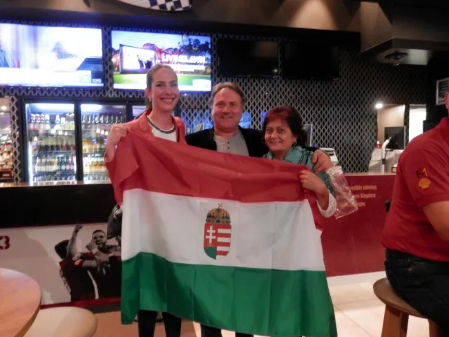 Ám az este itt még nem ért véget. Ne felejtsük el, hogy akkor este – helyi idő szerint hajnal 2-4-ig – játszott EB mérkőzést a magyar focicsapat az izlandiak ellen. A magyar közösség nagyjából harminc, a latin esttől kimerült tagja szurkolt lelkesen és kitartóan a broadbeechi kaszinóban. Van abban azért valami megható, hogy hosszú idő után újra szurkolhattunk a magyar focicsapatnak, és hogy ezt tértől-időtől függetlenül megteszi minden magyar közösség, egy emberként skandálva a ria-ria-hungáriát.