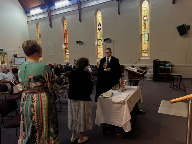 Az Adeláidéi magyar közösség számára ez a temporális átkelés különösen érzékelhető volt: a feltámadás ünnepe őszi fényben érkezett, sárguló levelek és rövidebbé váló napok közé, ahol a természet éppen nem ébredezni, hanem pihenni készül. Vasárnap reggel, Adeláidéban, amikor az utcán a platánlevelek bordó színbe öltöztek, a közösség a templomba lépve húsvéti éneket kezdett.