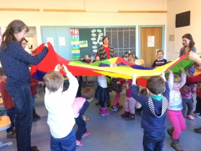 A névbeéneklős énekekkel könnyedén megtanuljuk egymás nevét, dalolva játszunk patkolósat, lovaglósat, vonatozunk. A színes ejtőernyőt lebegtetve napocskát varázsolunk az égre, majd a kislabdákat megtáncoltatva rajta kiugranak a gombócok a fazékbul, s végül féktelen kacagásba kezdünk. Márton-nap környékén „száz liba egy sorba', mennek a lagziba..." dalt harsogva kislibákként menetelünk, adventban gyertyát gyújtunk és leguggolunk: „ég a gyertya, ég." Mikuláskor persze Mikulást várunk. 3-6 éves kisgyerekek, akik német környezetben születtek és élnek, sokuknak csak az egyik szülője magyar, találkoznak kéthetente szombatonként 3 órára, hogy kortárs környezetben hallják és használják azt a titokzatos és furcsa nyelvet, amit csak mama vagy papa beszél. Kéthetente 3 óra. Ezeknek a csöppségeknek szinte minden alkalom egy újrakezdés. Még nincsenek ott kialakult barátságok, nincs biztonságos kötődés. Élmények vannak és benyomások, amiknek nagyon pozitívaknak kell lenniük!