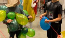 A második program során a gyerekek 4–5 fős csapatokba rendeződtek, egymás kezét fogva igyekeztek a közéjük ejtett lufit a levegőben tartani. A feladat nagyfokú figyelmet és együttműködést igényelt, hiszen amelyik csapatnál a lufi a földre esett,
