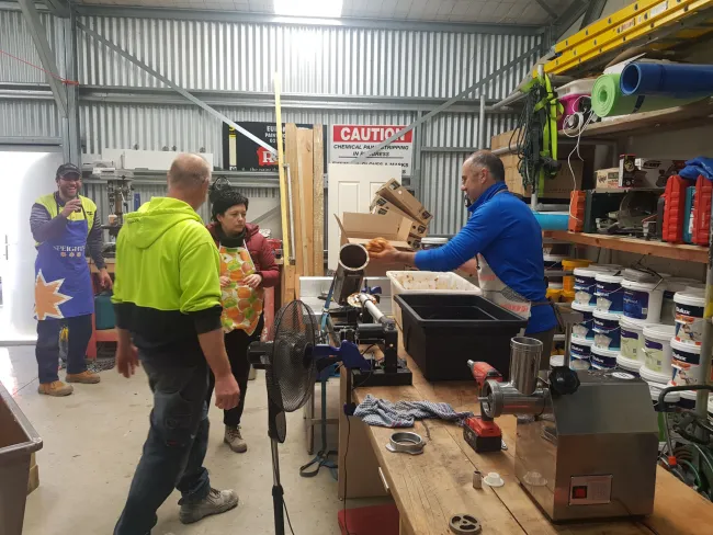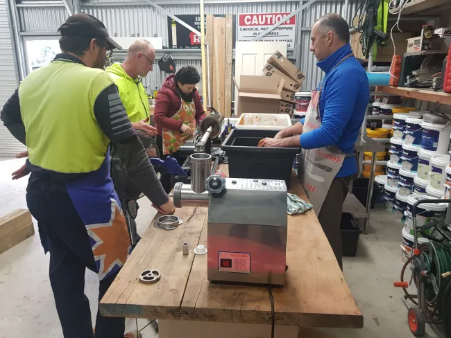 Ma sok helyen már nem az egész állatot dolgozzák fel, hanem csak szalámit, kolbászt töltenek, mert abból fogy a legtöbb, vagy ahhoz vannak meg a feltételek. Egy ilyen kolbásztöltésre kaptam meghívást Christchurch-ben.