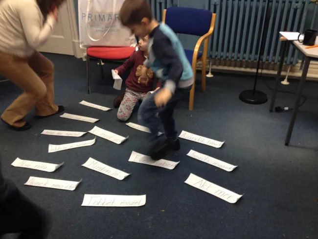 Az első foglalkozáson a szokásos feladatokat végeztük: mese hallgatása és megbeszélése, nyelvtani gyakorlás, beszédértés fejlesztése, írásgyakorlás, és a meséhez kapcsolódó feladatok elvégzése a Balassi-füzetből.