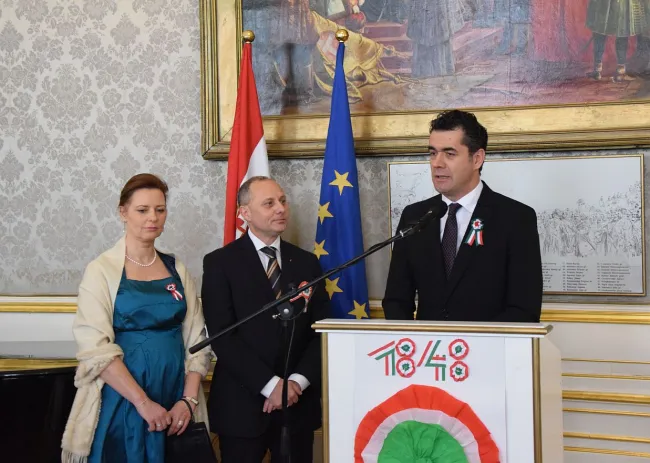 A bécsi magyar nagykövetség március 15-én délben szervezte meg hagyományossá vált hivatalos fogadását az 1848-49-es forradalom és szabadságharc 171. évfordulója alkalmából. Délután Bessenyei György szobrának megkoszorúzásával, illetve az Ausztriai Magyar Szervezetek Kerekasztalához tartozó egyesületek ünnepi műsorával folytatódott a program a Collegium Hungaricumban.