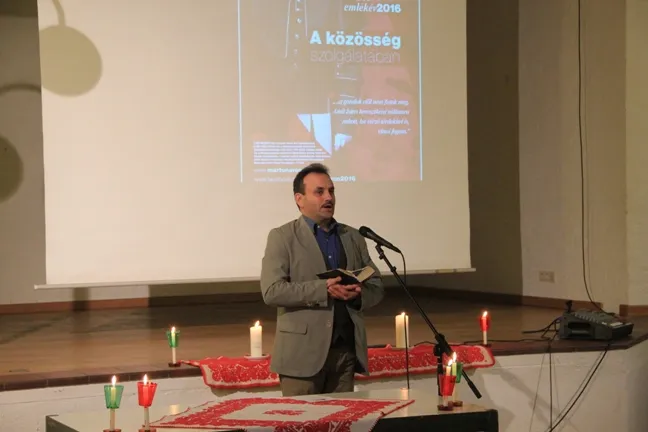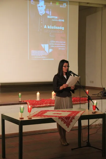 Az emlékest megnyitóján dr. Némethi Csaba presbiter köszöntötte az egybegyűlteket, majd Nt. Csákvári Dániel lelkész úr vezetésével közös imádsággal emlékeztünk a magyarság 20. századi történelmének kiemelkedő személyiségére. A családias és méltó megemlékezés különleges része volt Jost Ilona zongoraművész önálló műsorszáma, Kis Réka énekes előadása és Meggyesi Irén, a gyülekezet tagjának szavalata. Nagy megtiszteltetés volt számomra, hogy az erdélyi püspök életéről szóló előadásom Kőrösi Csoma Sándor ösztöndíjasként olyan hallgatóság előtt tarthattam meg, akik közül többen erdélyi származásúak, s sokaknak személyes emlékei vannak a püspökről. Márton Áron munkássága és életműve ma is, a 21. században is példaértékű, ezért kiemelten fontos, hogy élettörténetén keresztül múltunkat jobban megismerjük, s példaként álljon előttünk a mindennapokban. A püspökre emlékezve gyújtott gyertyák fényében lélekben összekapcsolódtunk a távolban élő magyar honfitársainkkal, hiszen az ösztöndíjprogram során számos helyen egy időben gyúltak meg a fények más-más magyar közösségekben. Különös, megható este volt.