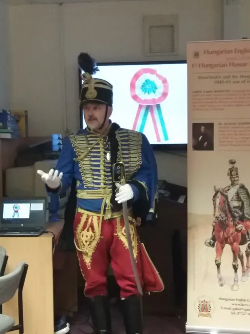 A helyi magyarság közösségi termében, a belvárosban található Humber All Nations Alliance (HANA) épületében már kora délutántól zajlottak az előkészületek László Brigitta, a Hungarian Community Group elnökének irányításával. Kettő órától kézműves foglalkozás várta az érdeklődőket, aminek keretében többek között az ünnep szimbóluma, kokárda készült. Picivel három óra után egyik szervezőként, a Kőrősi Csoma Sándor Program ösztöndíjasaként köszöntöttem a résztvevőket. Az esemény különlegessége, hogy angol vendégek is megjelentek szép számban, így a rendezvény két nyelven zajlott. A nem magyar anyanyelvűeknek nyomtatott anyag is készült. A köszöntő után Danny Fleming skót dudajátéka varázsolta el a hallgatóságot. Ez egy meglepetés programelem volt, a szervezők számára is a helyszínen derült ki, hogy szeretné a nemzeti ünnepünk fényét emelni. Ezt követően történelemtanárként elevenítettem fel az 1848-49-es eseményeket, kitérve a főbb előzményekre és következményekre is. A magyar nyelvű előadás hátterében kivetítőn angolul lehetett a prezentációt követni. A megemlékezés Petőfi Sándor Nemzeti dalának előadásával folytatódott, melynek hat versszakát hatan szavalták el. Óriási dolog ez, hiszen a gyerekek többsége magyar nyelvű verset, szöveget most tanult életében először. A refrént együtt harsogta a teremben összegyűlt magyarság. Ezután került sor az 1. Angliai Magyar Huszár Bandérium képviselőinek, Babanyecz Attilának és Oláh Gábornak huszárságot bemutató kétnyelvű interaktív előadására, mely könnyed hangvételű, mégis informatív volt. A jelenlévők megismerhették a huszárok történelmének főbb momentumait, öltözetét, fegyverzetét, sőt a kardot kézbe is vehették az arra vállalkozók; majd közös fotók készültek. Gáborék Manchesterből érkeztek Hullba és szabadidejüket, anyagi forrásaikat nem sajnálva végzik hagyományőrző tevékenységüket, szerte az országban. Ünnepségünk végén finom harapnivalók kíséretében - külön említésre méltó Bolláné Berta Anita frissen, a helyszínen sütött sajtos-tejfölös lángosa - kötetlen beszélgetéssel zárult a kora estébe nyúló rendezvény.