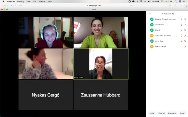 Az órák ottani idő szerint kedden este 8 órakor kezdődtek, hogy mindenki részt tudjon rajta venni. Első időkben nem csak a csoporttal kellett megismerkednem, hanem pedagógus pályámon eddig ismeretlen feladattal, méghozzá az online oktatás menetével. Sokkal több összpontosítást igényel, ugyanis a személyes jelenlét hiánya miatt egy pillanatra sem maradhat irányítás nélkül az óra, mert nincsenek ott azok az apró gesztusok, vagy egymás közelsége, ami ezeket feloldaná vagy kitöltené.