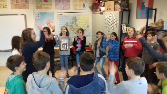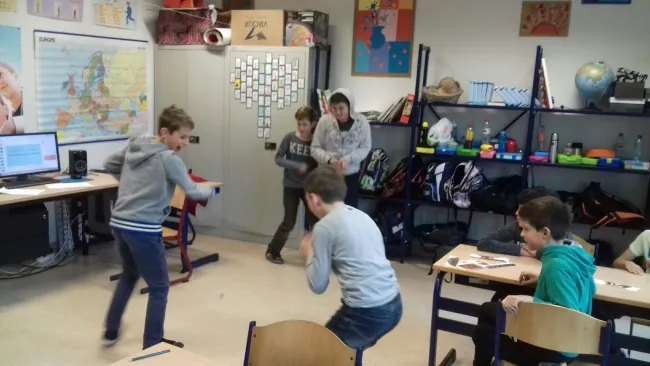 A brüsszeli Európai Iskola ötödikesei a Szent László emlékév alkalmából interaktív történelemórán vehettek részt, amelyet tanárnőjük, Tóthné Mischl Eszter támogatásával és együttműködésével állítottam össze és vezettem le. A 90 perces foglalkozást igyekeztem úgy felépíteni, hogy a gyerekek játékos és interaktív módon tanulhassanak a lovagkirályról. Az elméleti, történelmi részeket izgalmas csoportmunkákkal fűszereztem, így például a gyerekek igazi művészettörténeti munka révén maguk rekonstruálhatták a leányrablás történetét a falfreskó-részletek sorba állításával és interpretálásával. A módszeremnek nagy sikere volt, hisz a 90 perc hihetetlen gyorsan suhant el, a gyerekek pedig nagyon együttműködően és kreatívan kapcsolódtak be a feladatokba. Az órát egy drámafoglalkozással zártam, amely során a csapatok a foglalkozás alatt megismert Szent László legendákat pantomim segítségével adhatták elő társaiknak. Hatalmas lelkesedéssel bújtak bele Szent László, vagy akár a kun harcosok szerepébe, és láthatóan elvarázsolta őket a lovagkirály személyisége valamint a kor szellemisége. Nyilvánvalóvá vált, hogy a szuperhősök korában ilyen példaképekre, a saját hőseinkre is szükségük van, ezért kell emléküket időről időre felelevenítenünk és a mai generációk számára aktuálissá, átélhetővé varázsolnunk.