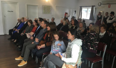 A jó hangulatú délután után épp annyi időnk volt csak, hogy berendezzük a termet az ünnepséghez, illetve fogadjuk az újonnan érkezett vendégeket. Az ünnepi műsor elején hegedű- és zongoraszó kíséretében a jelen lévő 40-50 ember elénekelte a Magyar Himnuszt, ezután Sarkadi Mucika (az Örökzöld csapat oszlopos tagja) szavalta el gyönyörűen Rudnyánszky Gyula: A magyar nyelv c. versét, mely a magyar nyelv értékteremtéséről, összekötő erejéről és ennek jelentőségéről szólt. Ezt követte Vajda András, az egyesület elnökhelyettesének angol nyelvű beszéde, aki egy kis történelmi áttekintést adott a jelen lévőknek Szt. István koráról. A magyar nyelvű beszédet én írhattam és mondhattam el. Számomra különösen nagy jelentőséggel bírt, hogy megemlítsem a fiatalok ünnephez való hozzáállását, azt, hogy mit jelentett számomra ez az ünnep évekkel, évtizedekkel ezelőtt, illetve az is, hogy kihangsúlyozzam, ez az ünnep elsősorban a közösségeké, és nekik kell tenni azért, hogy tovább éljen ez a hagyomány a gyerekeink és unokáink körében. Beszédemet követően Jansz Pál hegedűn, valamint Éber Dániel zongorán adták elő Erkel Ferenc: Bánk Bán c. operájának egyik leghíresebb áriáját, a Hazám, hazám címűt. A zenés darabot követően a Keszkenő Táncegyüttes kezdő és haladó csoportja lépett színpadra, ők mezőségi táncokkal készültek az ünneplő közösség számára.