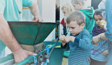 A rossz idő, vagy az ilyen ragyogó napsütés mindig aggodalommal tölti el a szervezőket, lesznek-e érdeklődők a programra. Örömmel jelenthetem: lettek. Már csurgott a must a présből, mikor első vendégeink megérkeztek, hogy szüreti előadásom végén, a táncház után szomjunkat olthassuk.