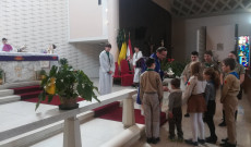 A vasárnap 11 órakor kezdődő szentmisét Licskó Szabolcs atya a cserkészgyerekek bevonásával, segítségével tartotta. A cserkészek közül többen ministráltak, segítettek a víz, bor, ostya bevitelében, valamint a könyörgéseket is a cserkészcsapat tagjai olvasták. A szentmise alatt a Lubilate együttes zenélt.