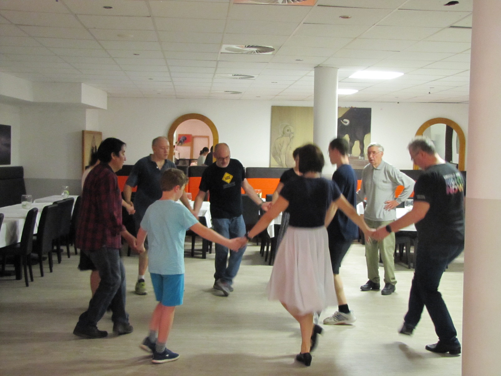 A tavaszi időjárás nem csak Hannover utcáit fürösztötte fényárban, de szívünkbe, lelkünkbe is elhozta a már régen várt napsütést s ezzel egyidejűleg a Magyar Táncházat is. 2018. április 21-én szombaton délelőtt 10:00-kor vette kezdetét az idei táncház, melynek új színhelyéül a Mamas Tapas étterem szolgált Hannover belvárosában, a Lister Meile-n. Ahogy az lenni szokott a délelőtt folyamán, egészen este 18:00-ig workshop keretein belül tanulhatták meg a résztvevők a híres szatmári táncokat. Az egész napos táncoktatás két vezetője Pogány Orsolya és Weidinger Péter volt, akik otthonosan mozognak a hannoveri magyar közösségben. Orsi a Magyar Egyesületben aktívan szolgál, segíti a vezetők munkáját (sőt az ösztöndíjasok munkáját is, például a honlapkezelés rejtelmeinek feltárásával), Péter pedig, mint régi Kőrösi Csoma Ösztöndíjas, szinte már hazajár közösségünkbe.