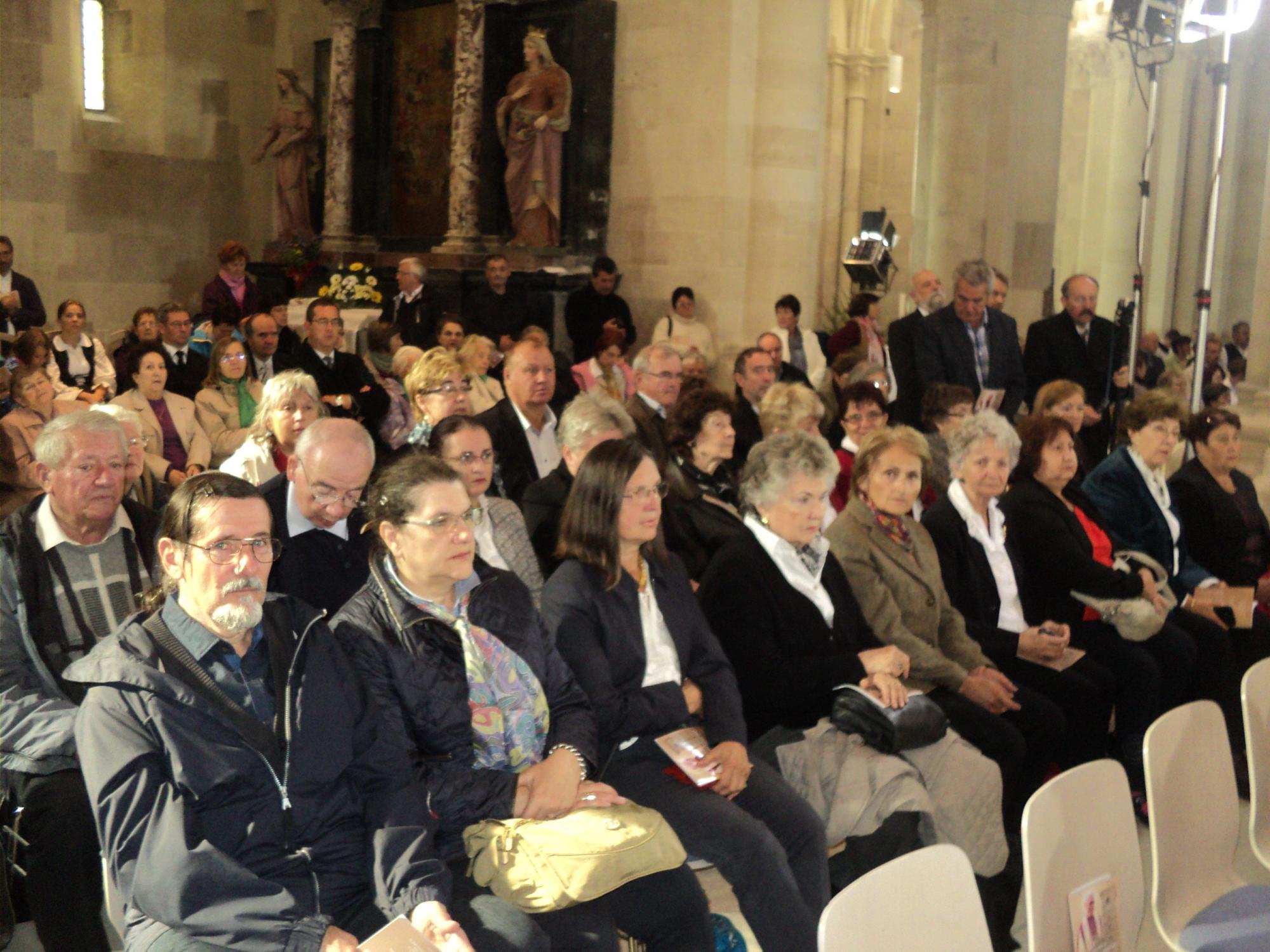 Szeptember 29-én kissé szeles, de továbbra is napfényes csütörtökre ébredtünk. A vár már kora reggel elkezdett benépesedni a Kárpát-medence legkülönbözőbb szegleteiből érkező zarándokokkal; már akkor sejteni lehetett, hogy ezen a napon minden eddiginél több magyar összegyűlik az erdélyi egyházmegye központjában. Noha programtervünkben az ünnepi szentmise előtt szerepelt egy egyórás reggeli séta a várban, erről Potyó Ferenc vikárius úr tanácsára lemondtunk. Az érseki helynök atya nyomban előre is vezetett bennünket a székesegyház déli kereszthajójába, a rozetta ablak alatt foglalt ülőhelyeinkhez – fél 10 felé közeledtünk ekkor –, mert a tömeg egyre gyorsabb és nagyobb gyarapodása közepette csak így garantálhatta számunkra, hogy ülőhelyeink megmaradnak. Ezúton is köszönjük Potyó Ferenc helynök úrnak a nekünk nyújtott ez irányú segítségét! A szentmise kezdetéig hátralévő több mint másfél óra is tartogatott számunkra felejthetetlen lelki élményeket, hiszen csoportunk tagjainak egy része most hallhatta életében először élőben a moldvai csángók énekét. „Nem vagyunk árvák, van édesanyánk, ki a magas mennyekből gondot visel ránk” – visszhangozták az ezeréves székesegyház falai, s a mellettem ülő, Erdélyben először járó Kulcsár Hortenzia nővér meg is jegyezte, ő most legszívesebben szabadjára engedné a könnyeit…