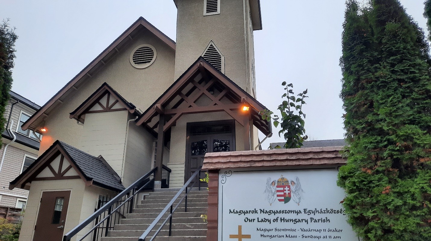 Vancouverben és környékén a magyar katolikusok számára már az 1950-es években is létezett lelki szolgálat. Az első katolikus közösség Abbotsfordban formálódott. Önálló egyházközség alapítására 1959-ben kaptak engedélyt. A katolikus közösség életének következő mérföldköve a saját templom keresése volt. 1961-ben sikerült megvásárolniuk azt az épületet, amely a mai napig a közösség szolgálatában áll. A kezdeti évek szűkösen teltek, ugyanis a felújításra elegendő anyagi forrással nem rendelkeztek. A hívek, adományaik mellett, saját idejüket és energiájukat áldozva tették használhatóvá, otthonossá templomukat. A templom felszentelésére 1962. június 8-án került sor. A szorgos munkának és hívek támogatásának köszönhetően 1969-re sikerült visszafizetni a templom vásárlásakor felvett hitelt. Az 1970-es évek a közösség felvirágzását hozták. A katolikus templom nem csak a hitélet, de a közösségi élet színterévé is vált. Számos egylet alakult a templom égisze alatt, illetve a hétvégi iskolában is szerteágazó és eredményes munka folyt.