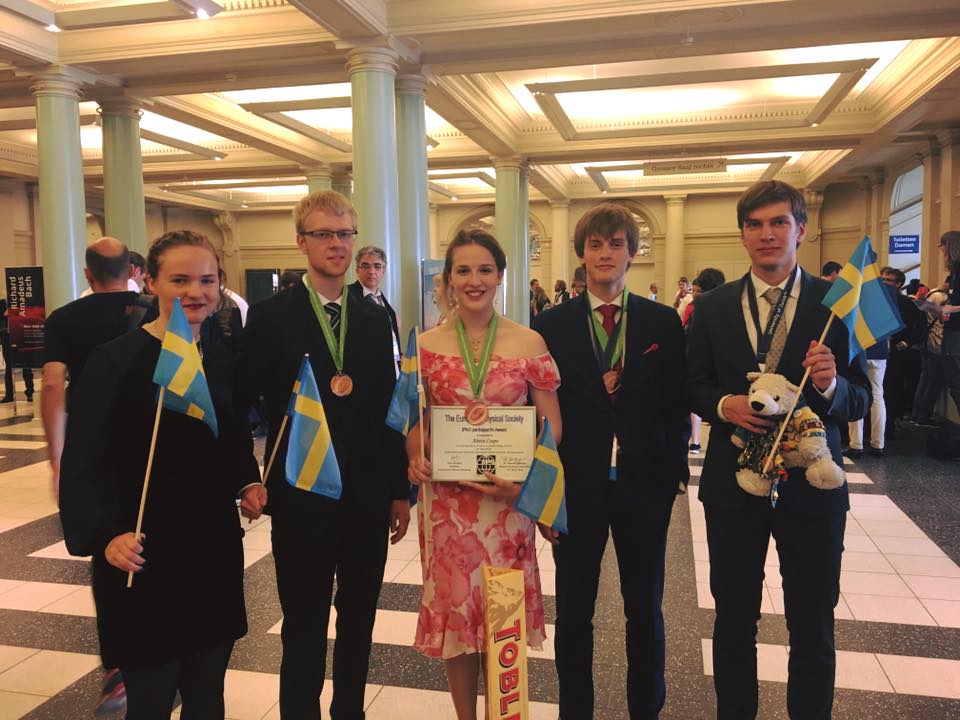Csapó Aletta: Az iskolában mindig is jól mentek a reál tárgyak. Majd kilencedikben volt egy olyan esély, hogy meg lehetett próbálni kijutni az Európai Unió természettudományos olimpiájára. Tanárom ajánlotta, hogy próbálkozzak, és akkor nyilván megpróbáltam. Őszintén szólva eléggé siettem, nem hittem, hogy erre van esély, de aztán mégis úgy jött ki, hogy behívtak az országos döntőbe Stockholmba, ahová összesen 20-an jutottak be. Itt úgy osztottak fel minket, hogy csapatokban csináltuk a feladatokat, és ez nagyon élvezetes volt, nagyon jók voltak a kísérletek, az emberek pedig olyanok voltak, mint én, ezért nagyon jól éreztem magam! De tulajdonképpen nem számítottam ott se sokra, hazajöttünk, majd utána emailben közölték, hogy kiket válogattak ki az európai döntőre. És én rajta voltam ezen a listán, ami akkor nagyon meglepő volt, de annyit jelentett, hogy elutazhattam Luxemburgba, és ott képviselhettem Svédországot, együtt 5 másik svéd diákkal, 2 darab 3 fős csapatban. És innen elkezdődött, mert innen akkor már nyilván következő évben is megpróbáltam ugyanezt a versenyt, az utána lévő években pedig már a „nagy”, kizárólag fizikából álló olimpiára készültem.
