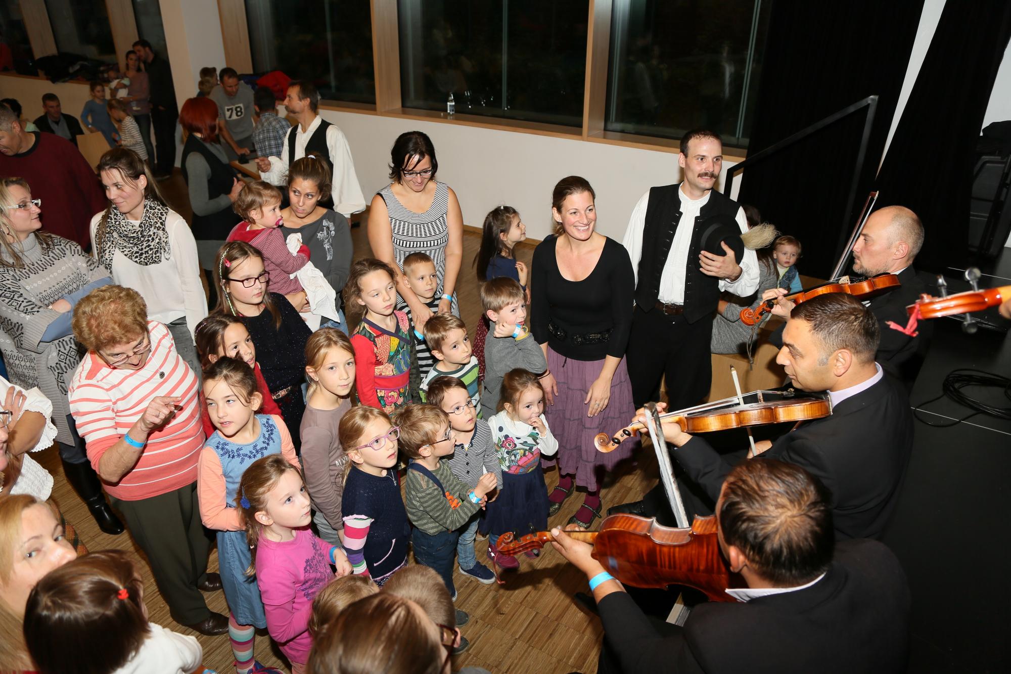 Számomra nagy élmény volt, ahogy Körtvélyessy Anna, (aki már szinte fogalom itt Németországban pedagógusoknak tartott továbbképzéseivel) összeállította, és egyeztette a zenekarral a műsor koreográfiáját. A bölcsőtől kezdve, a gyerektánccal, aminek résztvevőit gyakorlatilag a koncert előtti gyermek táncházból toboroztátok. A katonakísérő, halottkísérő, mennyegző, majd a közös éneklés a közönséggel, amivel Fekete Bori a végletekig fokozta a hangulatot, s végül a kaláka bál mind-mind az élet főbb állomásait jelenítették meg a közönség számára. Ki működött még közre a szakmai munkában?